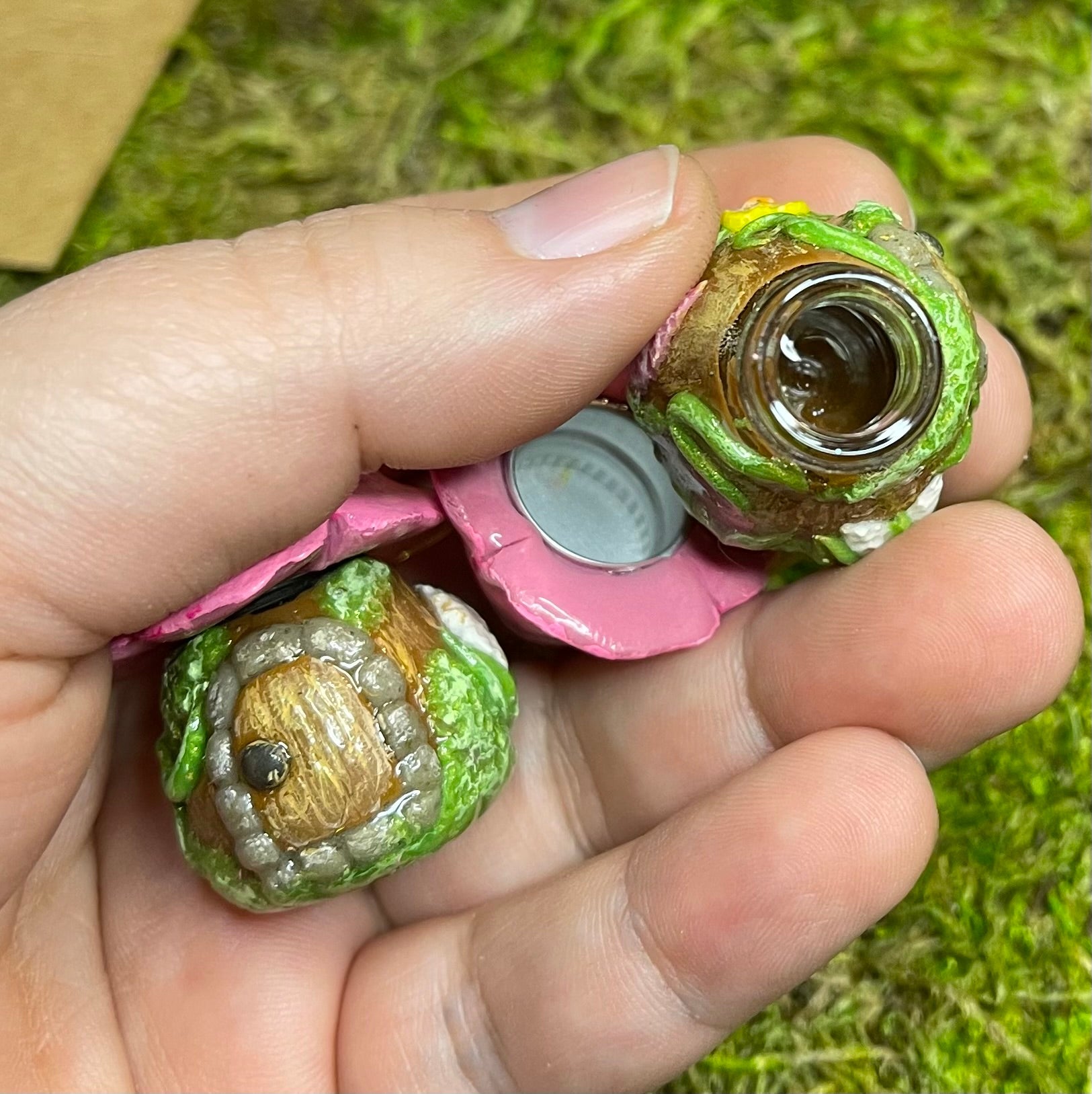Sculpted from polymer clay and coated in UV resin.