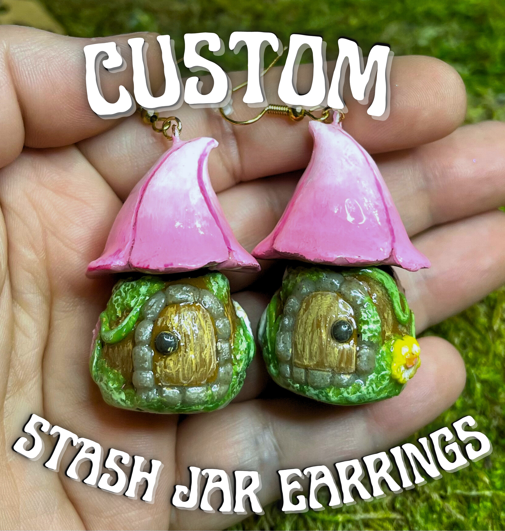 CUSTOM Stash Jar Earrings - Fairy Houses
