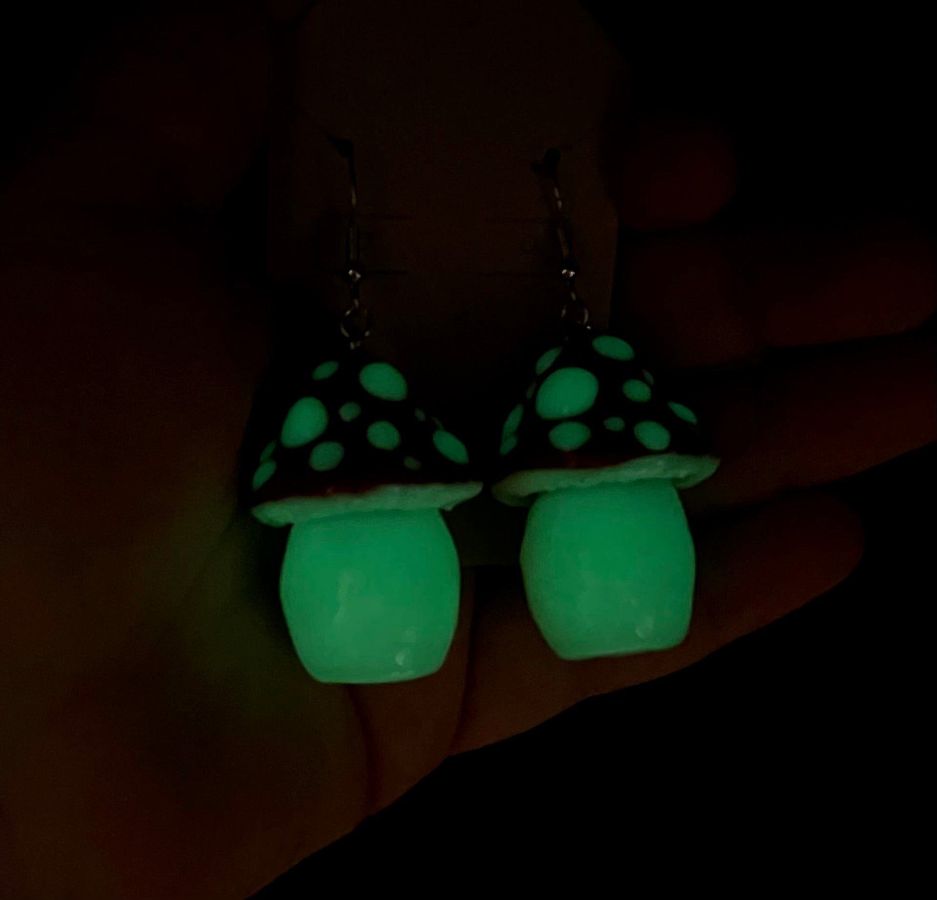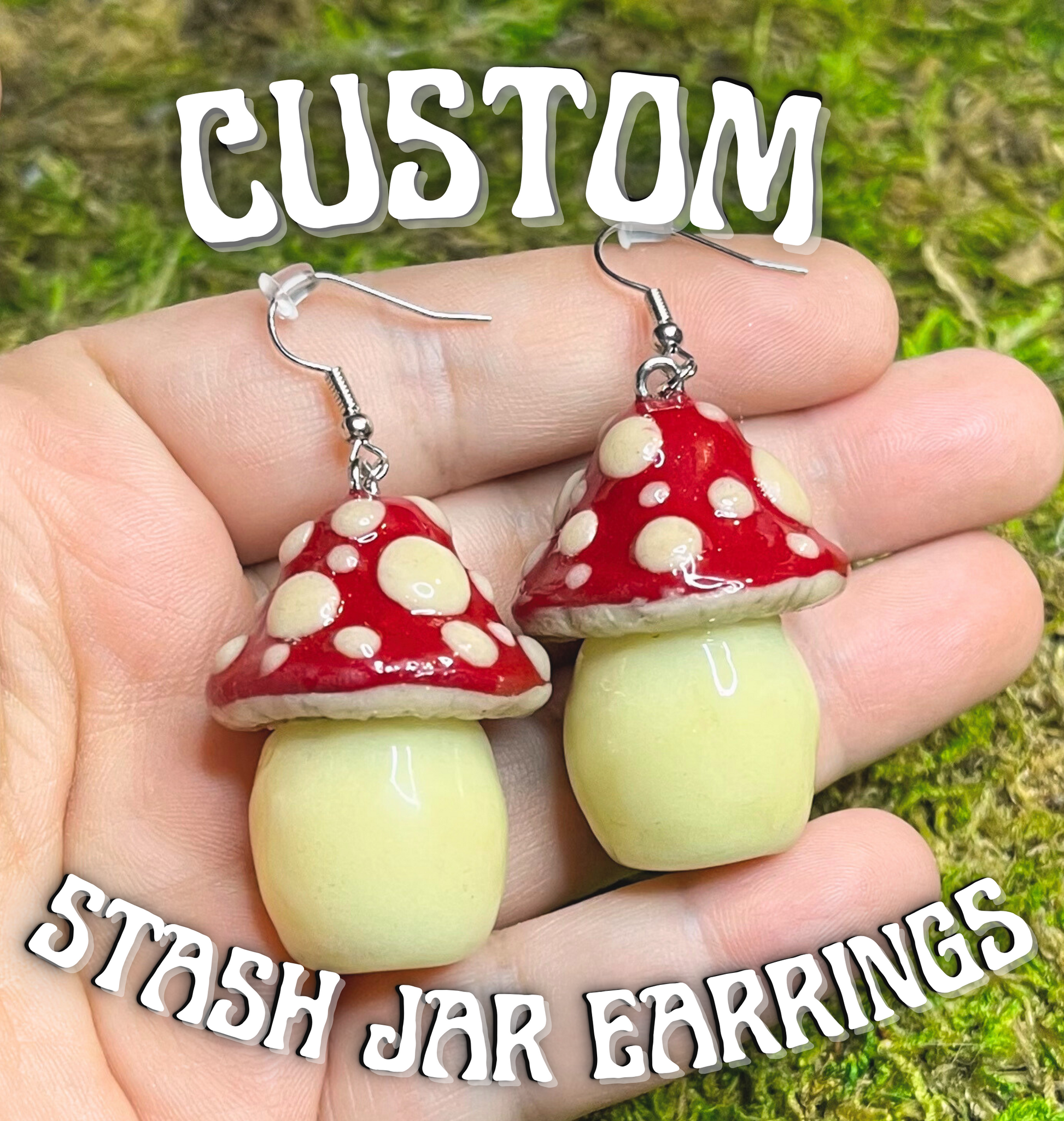 CUSTOM Stash Jar Earrings- Glowing Mushrooms