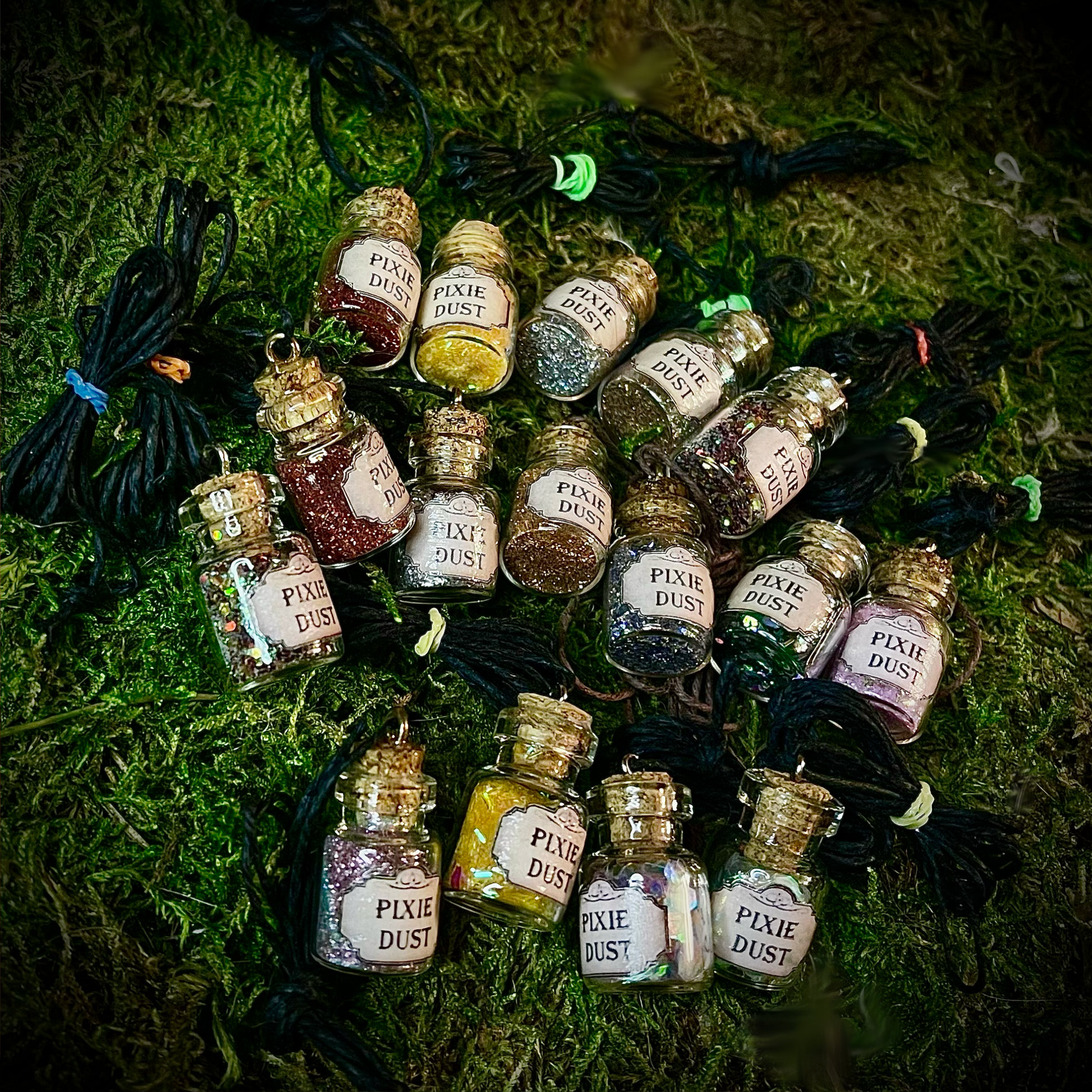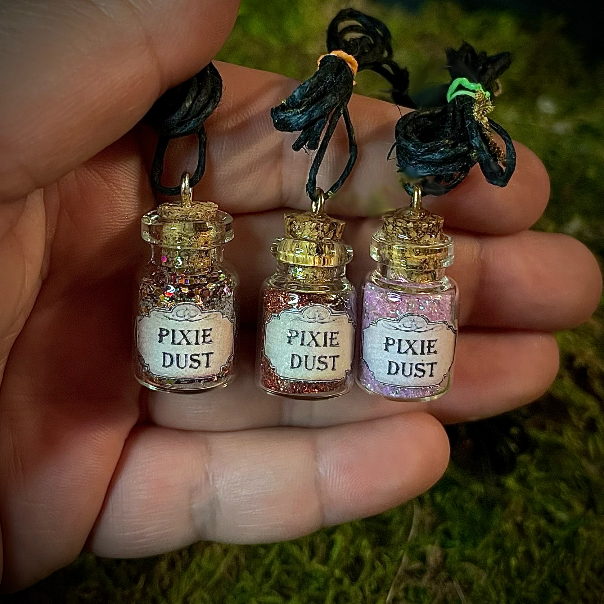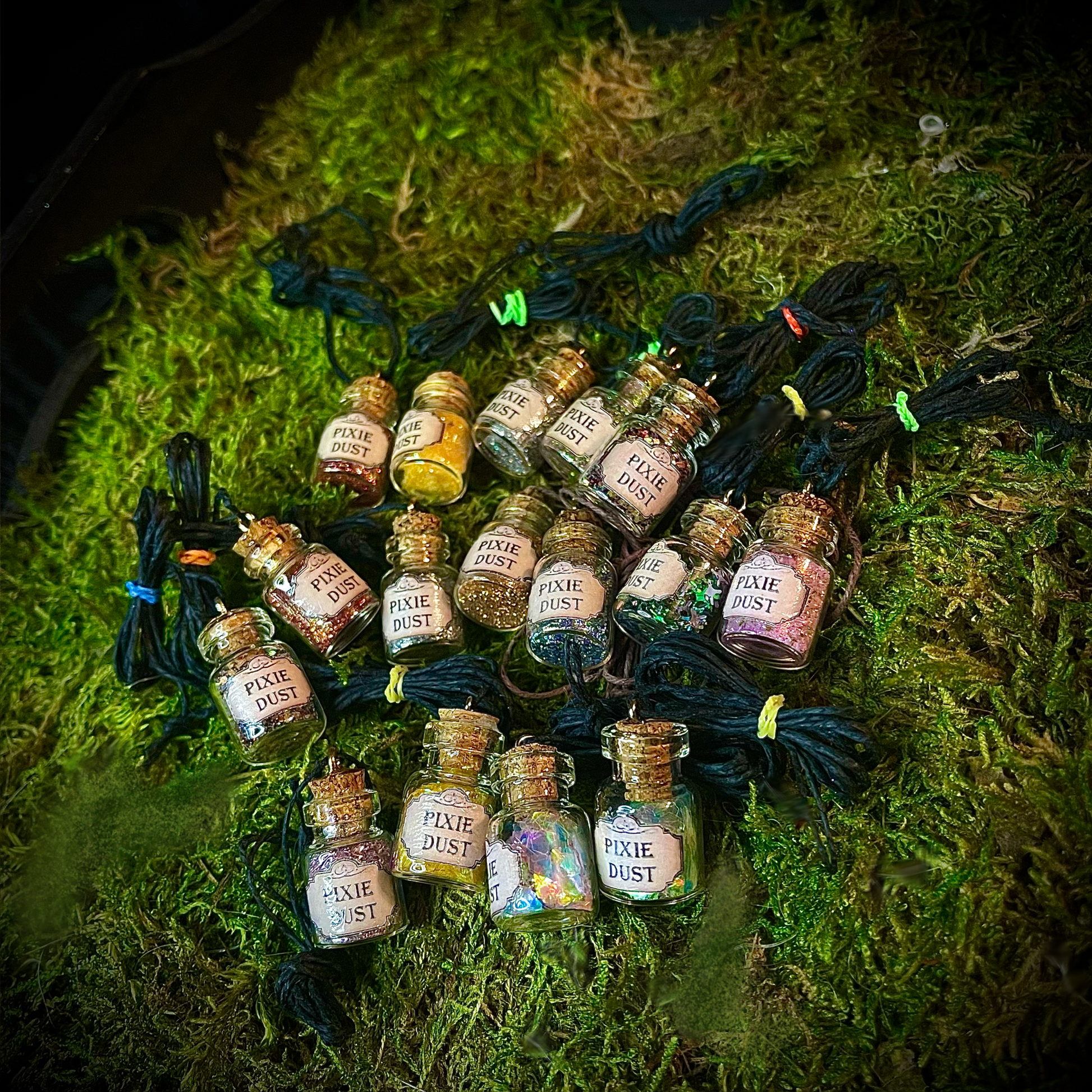Wear your pixie dust proudly with these mini bottle pendants! Custom colors available. Comes with a miscellaneous colored cord.